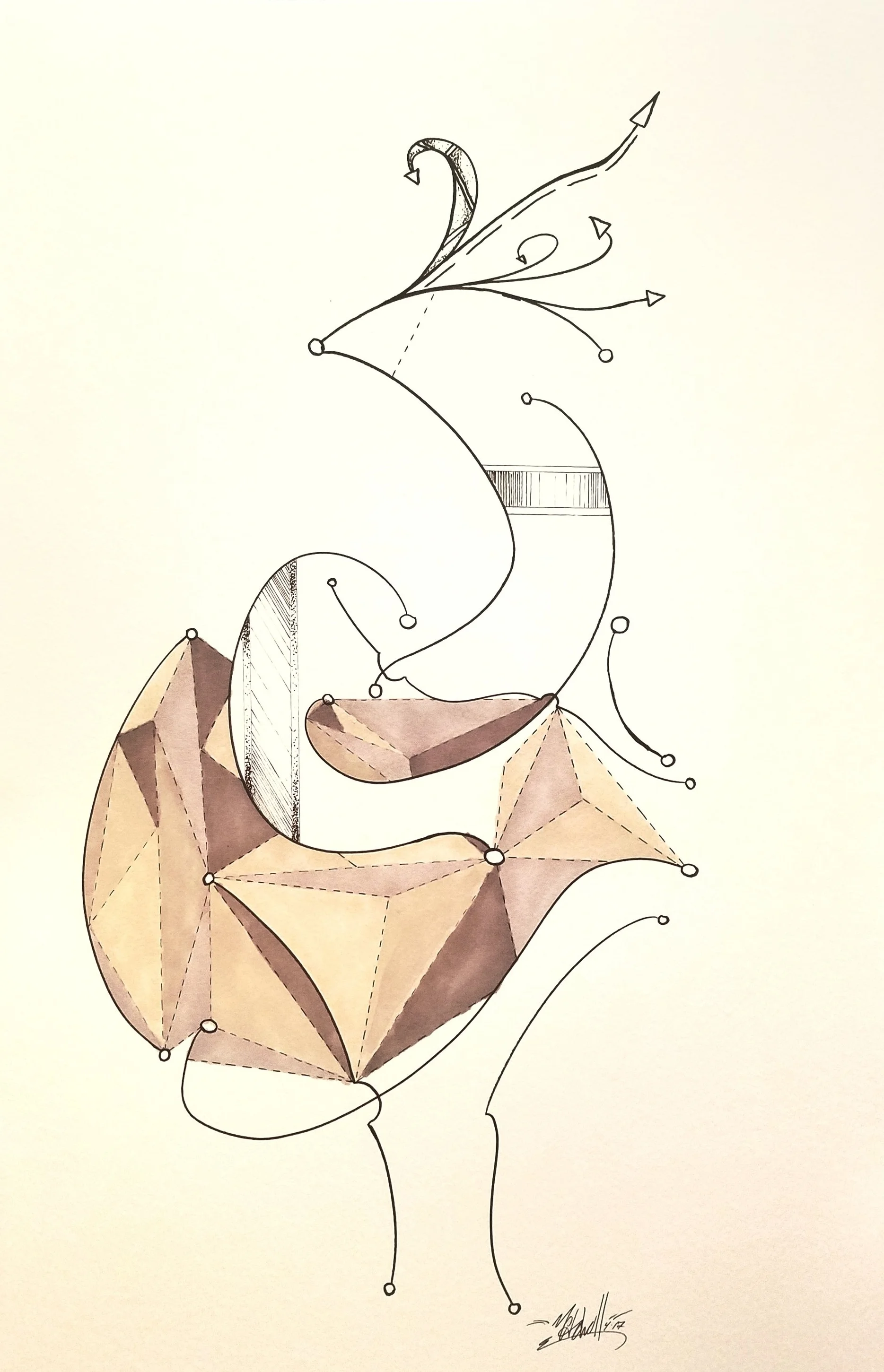 What started as an abstract contour line drawing became a bit more tangible with the addition of some triangles and wet markers